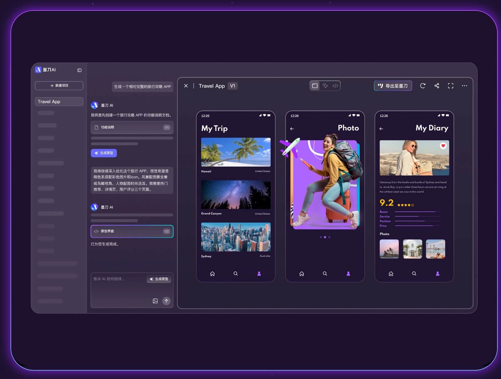 导入墨刀进行个性化设计。墨刀AI Agent生成的原型可以无缝导入墨刀平台,继续进行个性化设计,满足公司品牌和功能需求。
