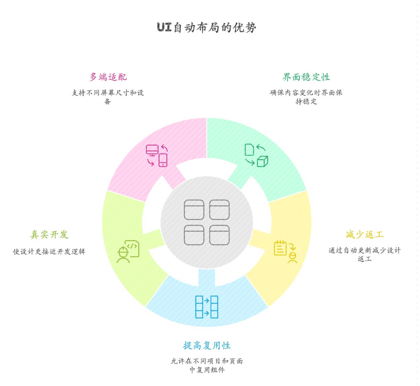 UI自动布局可以应对不同屏幕尺寸、不同设备比例,让界面结构保持一致性,减少为不同端重复设计的问题。